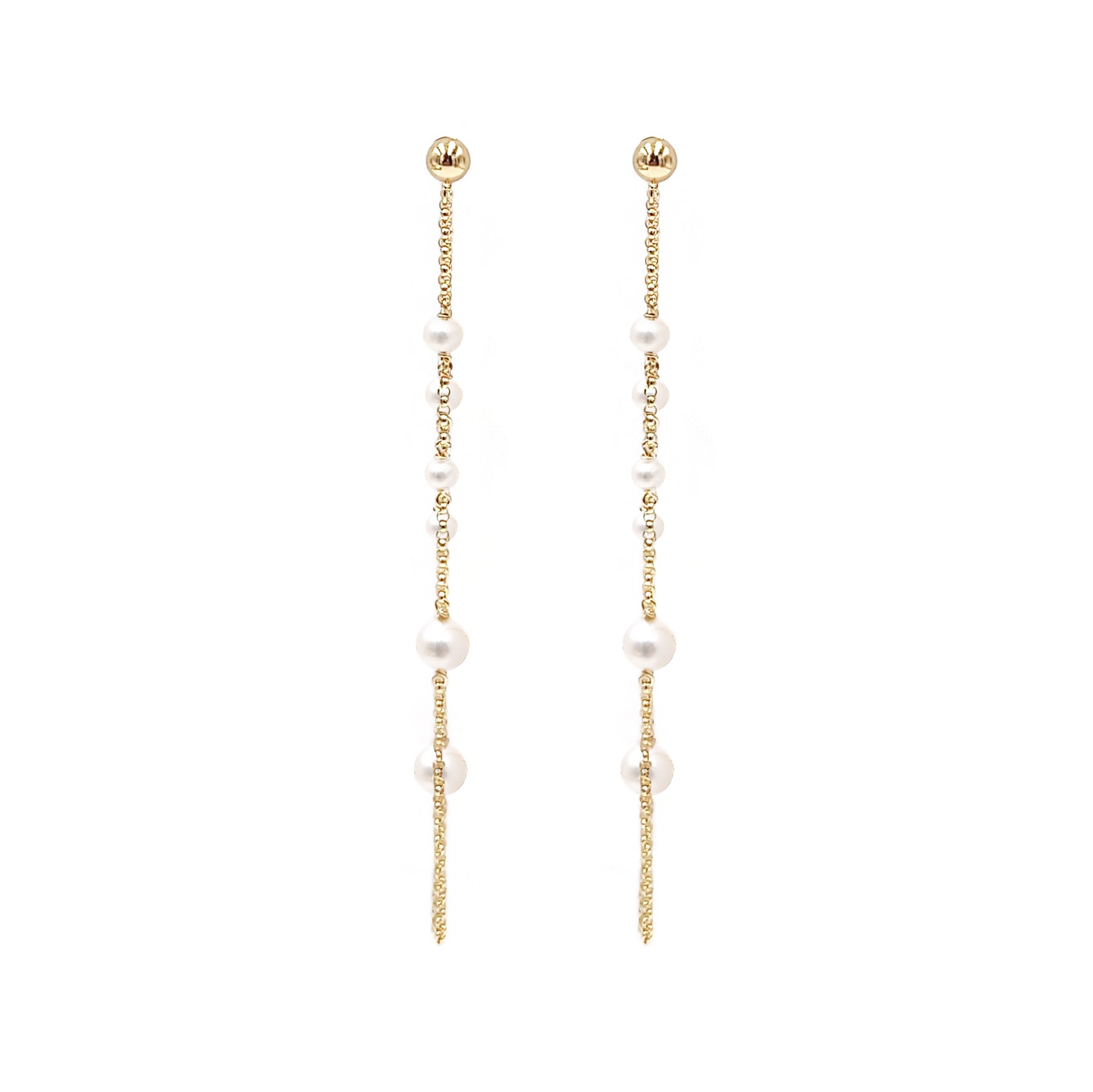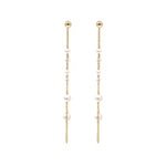 Aretes Largos de Perlas y Cadena (Oro Laminado)