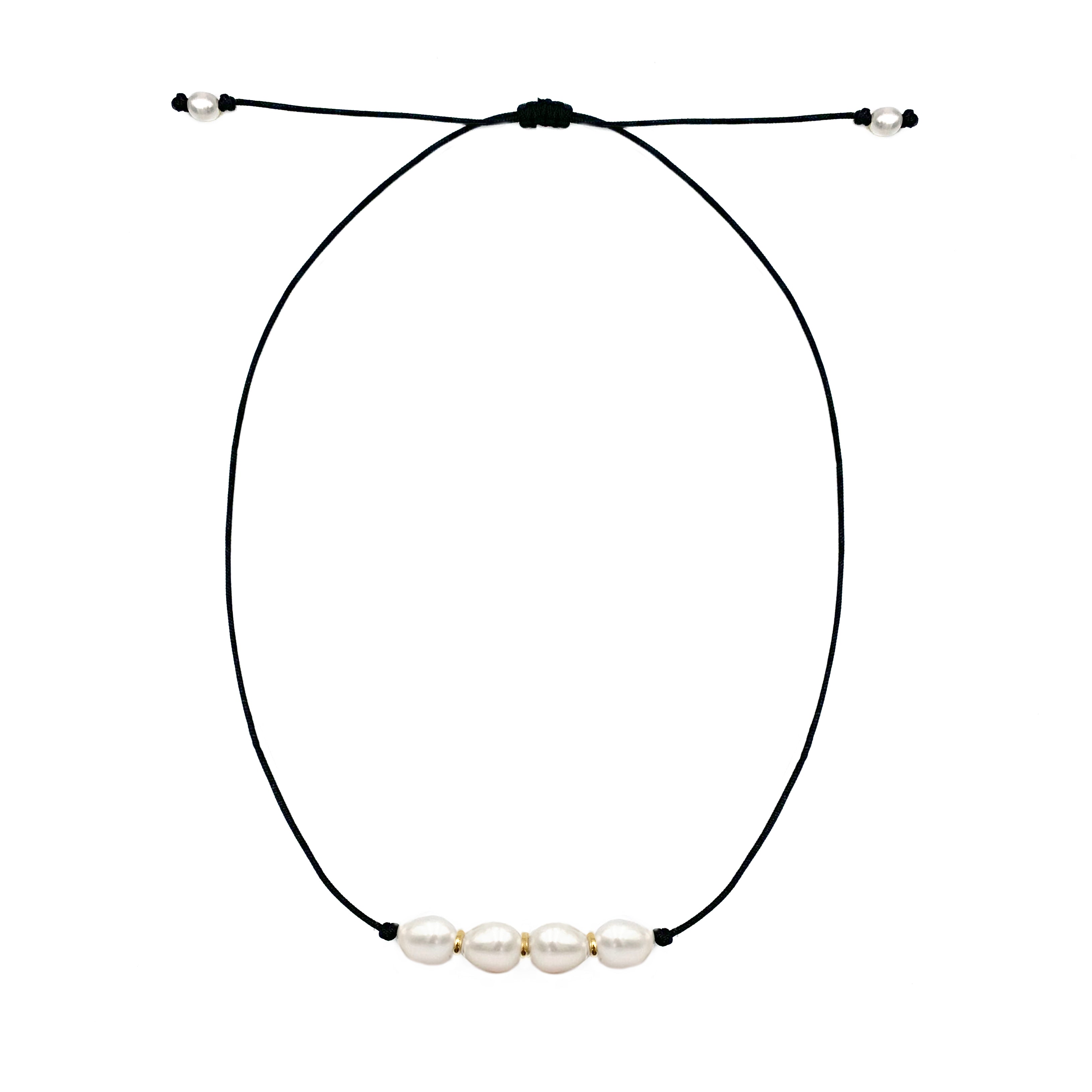 Collar Perlas Arroz con Hilo Ajustable (Baño de Oro Amarillo)